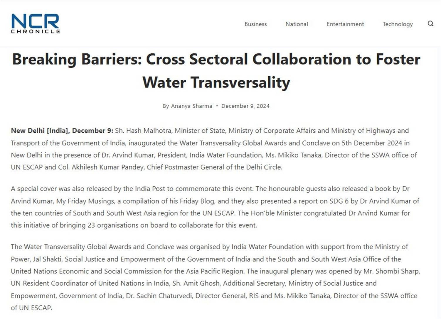 India Water Foundation, established in 2008 as a non-profit civil society & think tank, is engaged in enhancing public awareness about Sustainable Development Goals (SDGs) and major components of the Paris Agreement on Climate Change, in Asia-Pacific region in general and India in particular.
